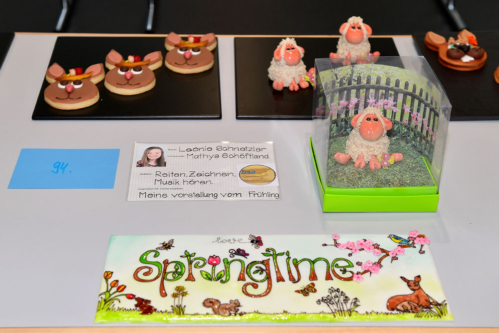 An der diesjährigen Creativa der Berufsschule Aarau nahmen die Lernenden Bäcker, Konditor und Confiseur sowie des Detailhandels teil. Sie zeigten ihre eigenen Oster- und Frühlingskreationen, von «Spitzbuben» über Torten zu Marzipanfiguren. Die Arbeiten wurden durch eine Fachjury bewertet und an einer Feier mit Lehrbetrieben und Familienangehörigen wurden die Auszeichnungen überreicht. In den verschiedenen Ansprachen wurden Engagement und Qualität gewürdigt. Viele Besucherinnen und Besucher haben an drei Tagen die Creativa-Ausstellung und Leistungsschau besucht.