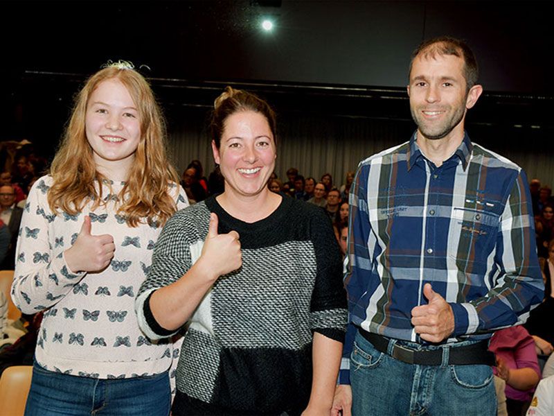 Die Siegerehrung wurde, angereichert durch viel Lob und Anerkennung von Fachlehrer und Moderator Franz Ziegler, von rund 400 Personen, Lernenden, Lehrmeisterv und Familienangehörigen besucht. Paul Knoblauch, Rektor der Berufsschule, munterte die jungen Berufsleute auf, sicher immer wieder Herausforderungen und Wettbewerben zu stellen. «Auch wenn es dabei immer Sieger und Verlierer gibt, der Wettkampf tut gut und soll Ansporn sein.» Bäcker-Präsident Dominik Frei gab der Freude über erfolgreiche junge Berufsleute Ausdruck. «Wer engagiert, zielstrebig und motiviert an die Arbeit geht, wird Erfolg haben», mahnte er. Beim Bäckerberuf gäbe es keinen Fahrstuhl noch oben, man müsse immer die Treppe nehmen. Heiner Kuster, Vorstandsmitglied von Gastro-Aargau dankte für die Kooperation unter zwei Berufen, die sich sehr nahe stünden. «Was ihr in der Backstube hervorzaubert, können wir nicht», stellte er fest. Bei den Gästen würde aber schon immer die Verbindung von Köchen und Bäckern geschätzt. Die Verteilung der Medaillen wurde begleitet durch Bilder der eingereichten und ausgestellten Arbeiten. Für eine Überraschung sorgte WorldSkills-Weltmeisterin Ramona Bolliger aus Gontenschwil. Wegen einem Auslandaufenthalt konnte sie persönlich nicht anwesend sein. Mit einer Grussbotschaft und emotionalen Bildern von den World Skills in Abu Dhabi gratulierte sie allen Teilnehmenden an der Creativa 2017 und munterte zum leidenschaftlichen Engagement während und nach der Ausbildung auf. «Die Lehre hört nicht an dieser Schule auf», verkündete sie. «Dem Bäcker, Konditor und Confiseur stehen die Türen zur Welt offen.»